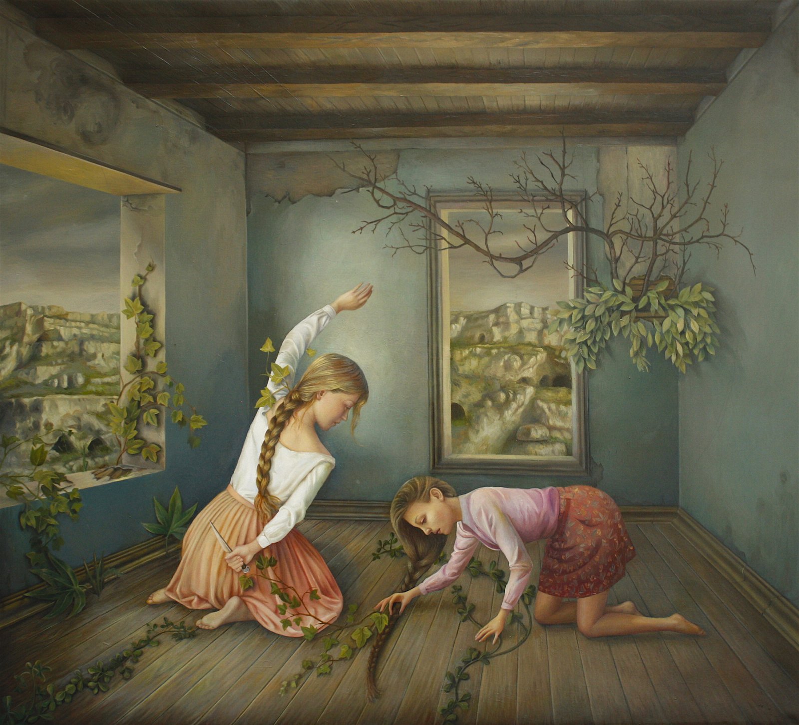 Ilaria Del Monte (Italy, 1985) Apulian by birth but of Lucanian origin, she attended artistic high school in Matera and graduated in painting at the Brera Academy of Fine Arts. In 2020 the French television programme Med in Arte devoted a documentary set in Milan to her. Ilaria Del Monte’s drawings and paintings are narrations told with a wise hand and a mature and transversal conceptual intelligence. Del Monte’s signs in pencil on paper and oil brushstrokes represent worlds constructed with an apparent classicism borrowed from the 20th-century painting tradition, but they are ineluctably revealed, beneath the remains traced by the hand, to be organisms of cerebral conjectures that are developed as an attempt to break up consolidated equilibriums, to play on the unforeseen and the unpredictable, to open a mental window aiming towards fantasy and hope. Her poetics are in a situationist mould with a Nietzschean derivation, in the meaning given by the German philosopher to art, which takes on the value of man’s liberation from the oppression of rationality, allowing the individual to express their creativity – and therefore their irrationality – in a world that tends to destroy it. Hence reflections and metaphors are generated, surreal volleys in which the above becomes the below, dream-like lucubrations constructed with eyes open and nerves tense, passages in which women walk on trees and floors no longer exist, while the softness of the gesture sinks in the cold or warm temperature of the narration. Among her solo exhibitions we may recall: The Window’s Tales, Roberta Lietti Arte Contemporanea, Como, 2011; Boarding pass, VBM 20.10, Berlino, 2012; P.G.R. Per Grazia Ricevuta, Riva Arte Contemporanea, Lecce, 2012; Quando Teresa si arrabbiò con Dio, Scatolabianca e Roberta Lietti Arte Contemporanea, Milano, 2013; Out of this world, Antonio Colombo Arte, Milano, 2014; Sussurri, Galleria Punto sull’Arte, Varese, 2015; Spazio Vitale, Momart Gallery, Matera, 2019; The company of the dream, Other size gallery, Milan, 2023. She lives and works in Milan.