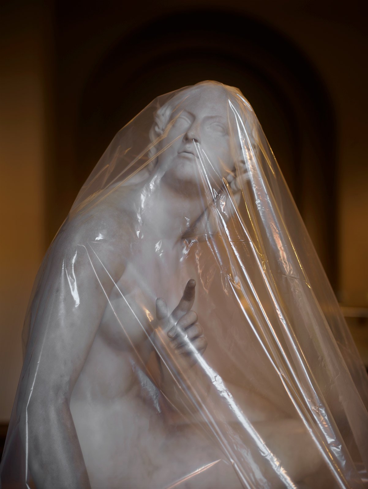 Roberts manages to capture and convey a clear contrast in these images. On the one hand, the sculptures represent solidity and durability through the ages. On the other hand, the plastic that covers them gives them a fragility, a temporariness that underlines human vulnerability in the face of the uncertainty of the pandemic.